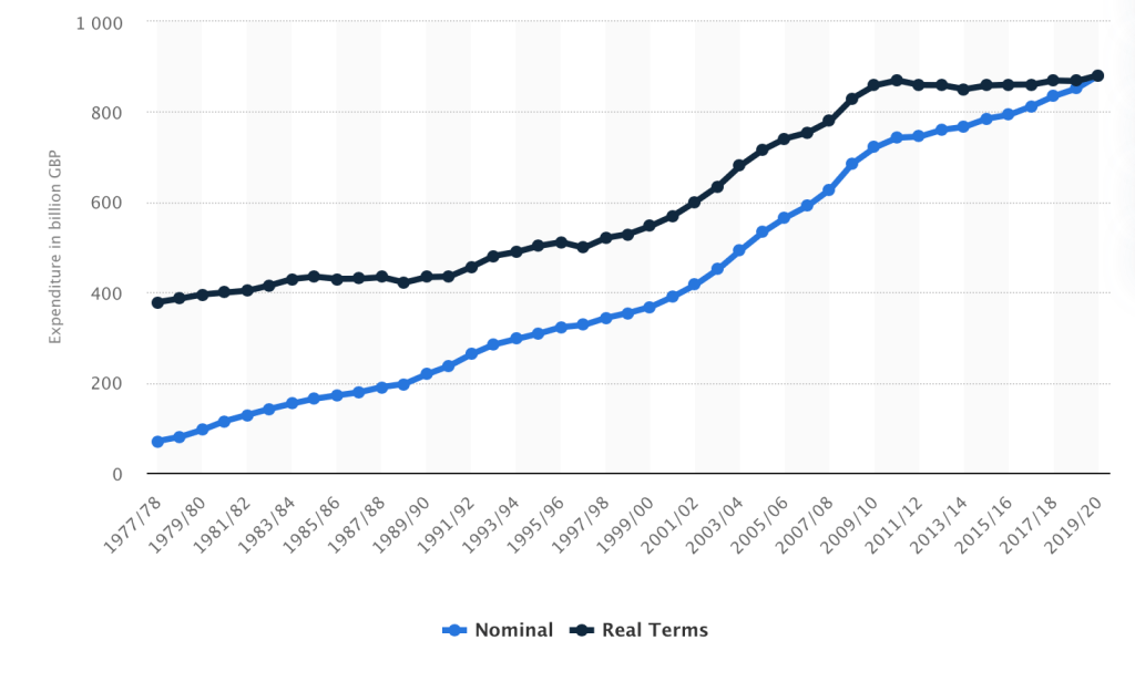 Source: https://www.statista.com/statistics/298465/government-spending-uk/